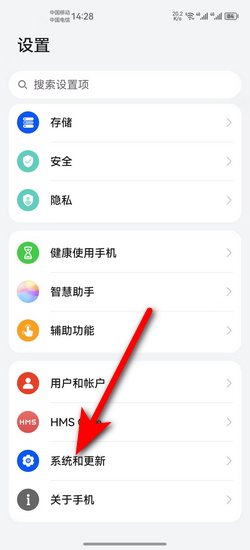 1:首先打开手机设置,然后点击系统和更新。