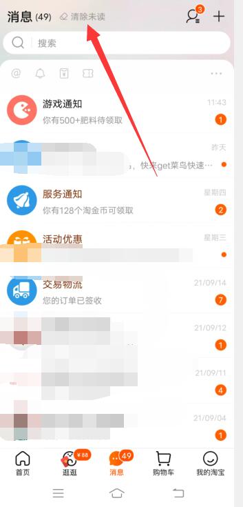 进入页面,点击清除未读选项可以清除没有读的消息。