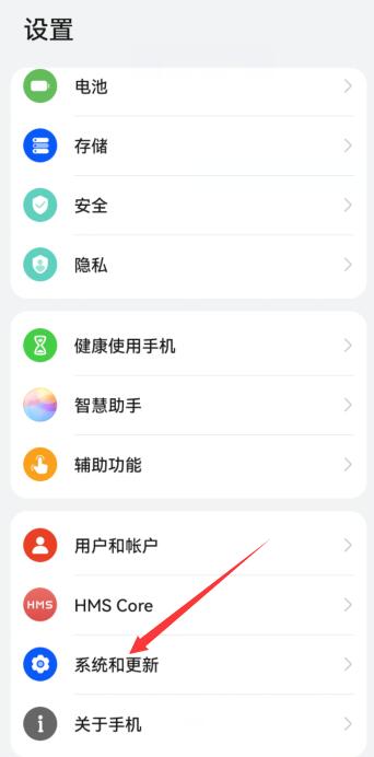 打开手机设置图标,选择系统和更新。