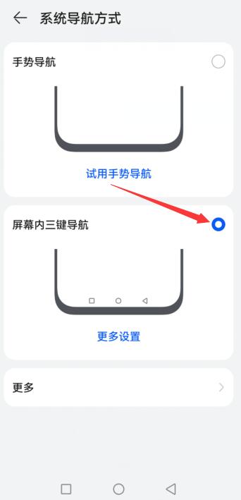 选择系统导航方式,选择屏幕内三键导航按钮即可。