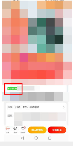 3:在页面内的商品的详细页面中也看到有小时购的符号。