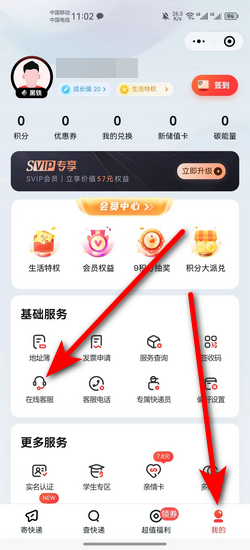 1:首先打开顺丰速运微信小程序在我的页面绝象剧杨土长海罪中点击进入在线客服。