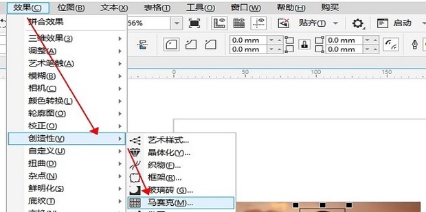 3:点击上方效果选项中的创造性-马赛克。