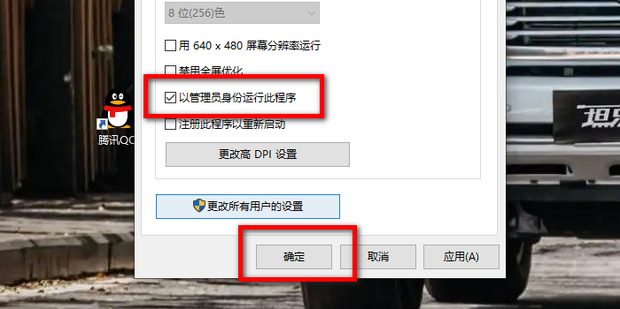 3:最后再勾选以管理员身份运行此程序,然后点击确创情路稳都定保存设置即可。