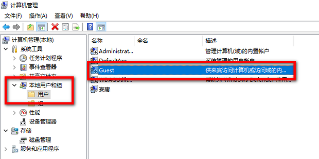 2:然后在本地用户和组中选中用户,再双击打开Guest账户。