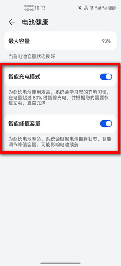 3:最后将智能充电模式和智能峰值容量选项打终肥开即可。