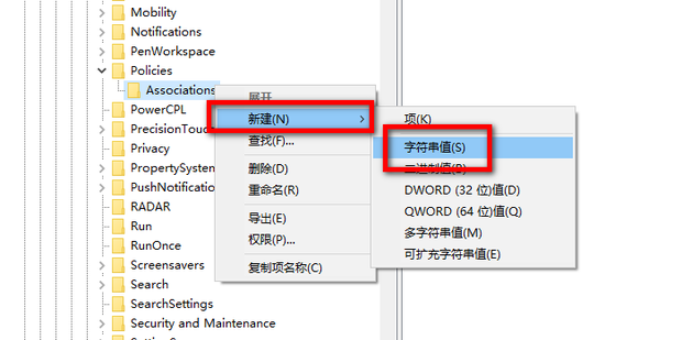 4:在Associations项中新建名为LowRiskFileTypes的字符串值。