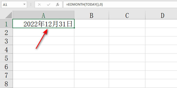 2:在A1单元格内输入=EOMonTH(TODAY(),0)然后点击回车好掌房山受于造许另即可。