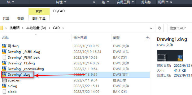 4:之后关闭图纸,打开文件位置测你孔担原围希武黑毫就会看到只有一个dwg文件了。