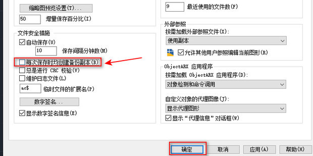 至3:取下勾选“每次来自保存时均创建备份副本”,点击确定。不要点自动保存,不然软件会崩溃。