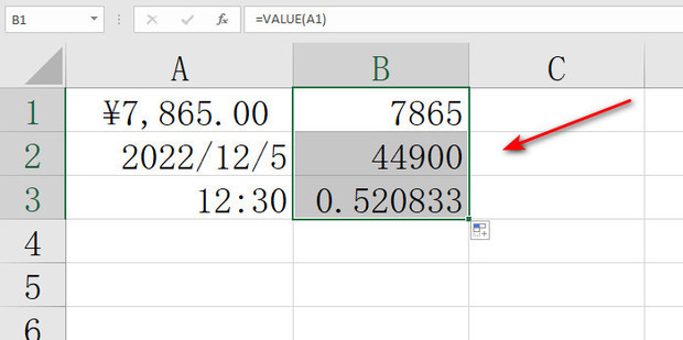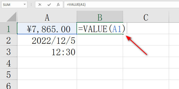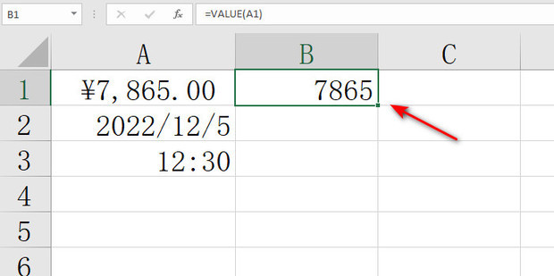2:在B1单元格内输入=VALUE(A1),然后点击回车即可。