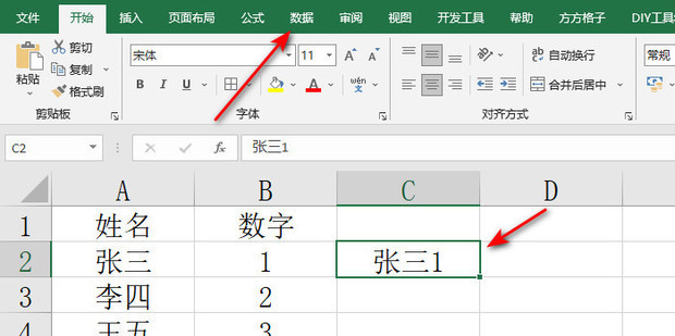 3:选中C2单元格后选择上方菜单栏内的数据。