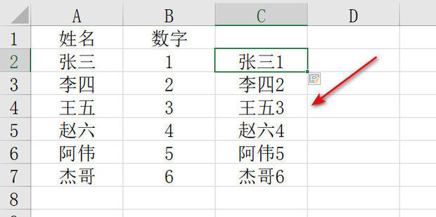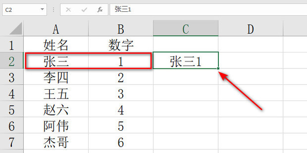 2:在C2单元格内输入A2单元格和B2单元格相加的内容。