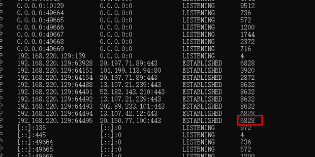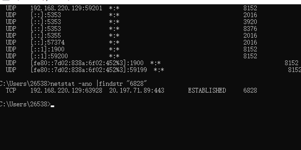 5:然后输入命令:netstat -ano |findstr "6828",输入完成后点击回车键。