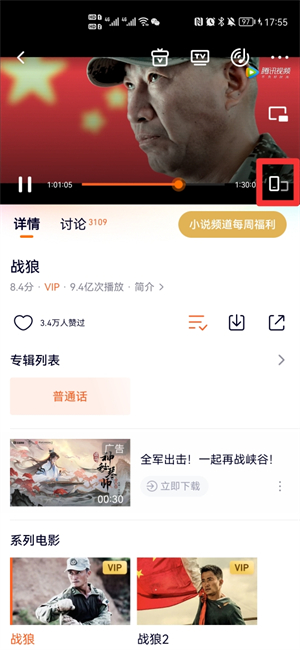 在播放界面中,点击横屏播放按钮即可。