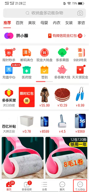 在首页的界面中,点击个人中心。