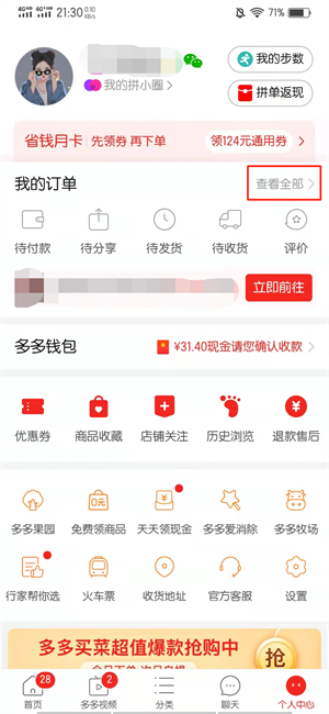 在个人中心的界面中,点击查看全部即可。