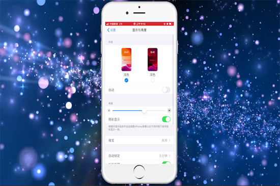 4、苹果手机必须升级更新到ios13版本,先进入手机的设置,找到手机中的显示与亮度,把手机系统设置为深色模式,再打开微信,就能使用夜间模式了。