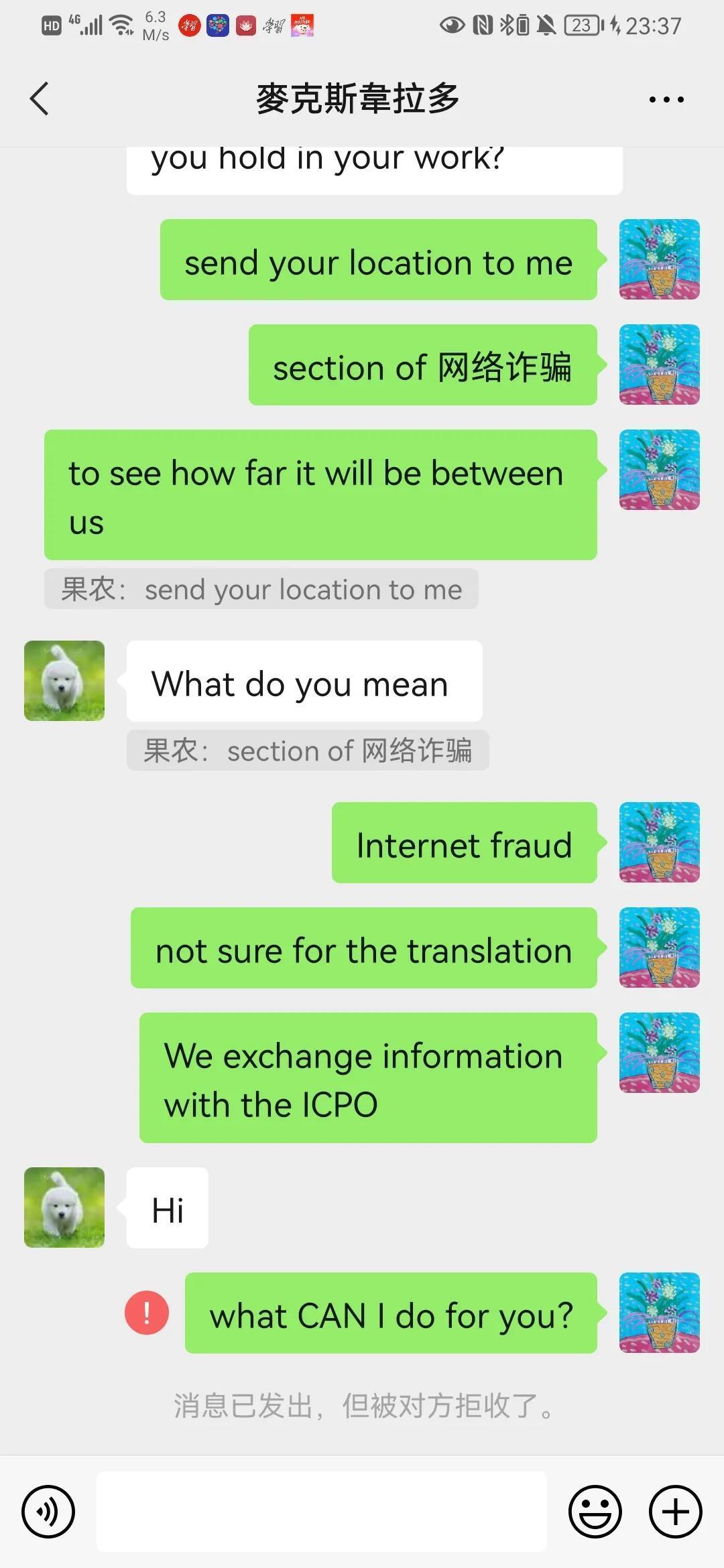 我说负责网络诈骗,和国际刑警会交换情报(当然不是),这货怂了……