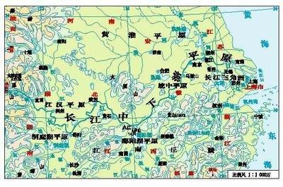 图六 长江中下游平原地形及水网示意图