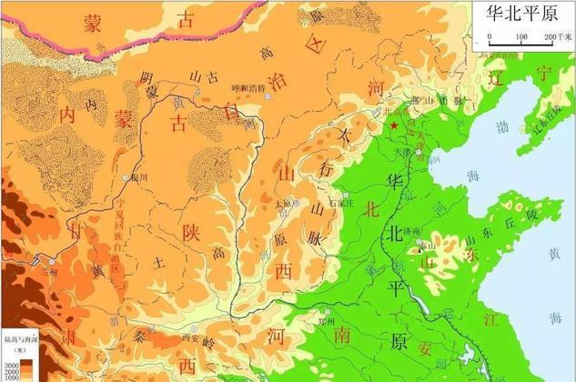 图三 华北平原地形图,非常的平坦且广袤