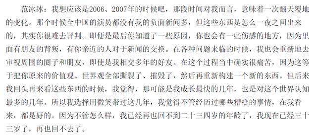 对于网络上的谣言,范冰冰专访时曾透露,她是被好友背叛,对方故意黑她,有段时间网上都是范冰冰的负面新闻,被身边亲近的人背叛,范冰冰非常痛苦,但她也承受了这些,内心变得更加强大。所以范冰冰对于造谣者,一直都不手软,坚决将他们告上法庭,这样谣言才会减少。