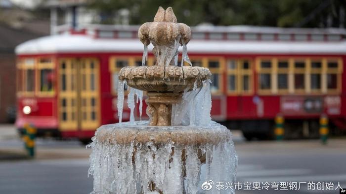 美国南部新奥尔良市的喷泉因严寒结冰(2022年12月24日)