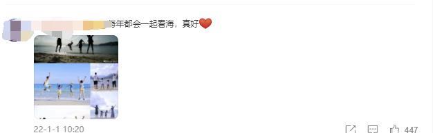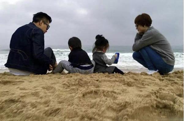 这是邓超孙俪夫妇第六年带孩子海边度假迎接新年,每年一家人晒幸福的姿势都一样,形成了他们家的传统。