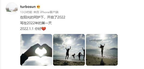 这条说说看得出孙俪一家人一起跨年的喜悦之情。与此同时,孙俪还配了3张图片,其中一张是比心的照片。