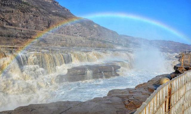 它就是壶口瀑布,显著的地位让它的名声日益提升,它和平常所见的瀑布不太一样,壶口瀑布的颜色是黄色,如果夏季来这里的话,将会看到气势恢宏的瀑布,因为这是它水量最大的季节。壶口瀑布四季的景色都不一样,春天比较温柔,秋天多了一丝严肃,冬天则会出现罕见的巨大冰瀑,十分壮观。