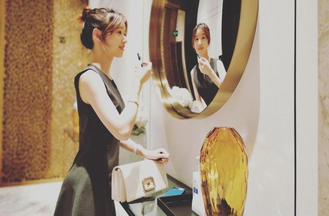 照片中,27岁的章泽天身穿黑色连衣裙腰身纤细,皮肤在灯光的照耀下白到发光。她正对着镜子补涂口红,侧颜相当能打,大大的眼睛,高挺的鼻梁,五官精致不输明星。