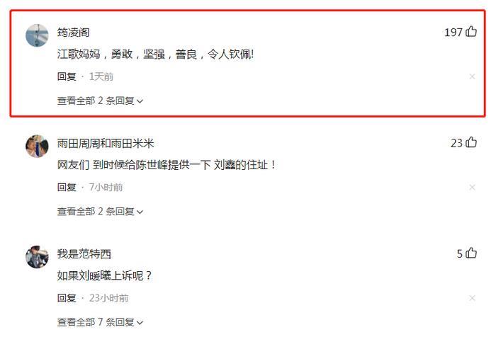 网友评论:江歌妈妈,勇敢,坚强,善良,令人钦佩!