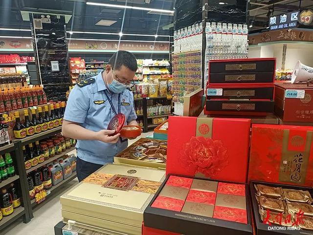 现场,执法人员仔细查看了月饼的包装、商品价格、生产日期等情况,对月饼等商品的进货渠道、检验报告、生产厂家证照资质等内容逐一进行了详细地检查,并查看月饼礼盒是否使用贵重金属、红木等材料、是否有混搭销售的情况。