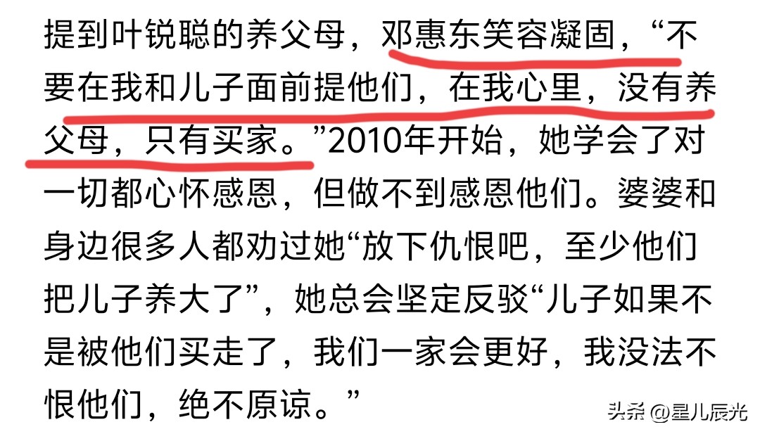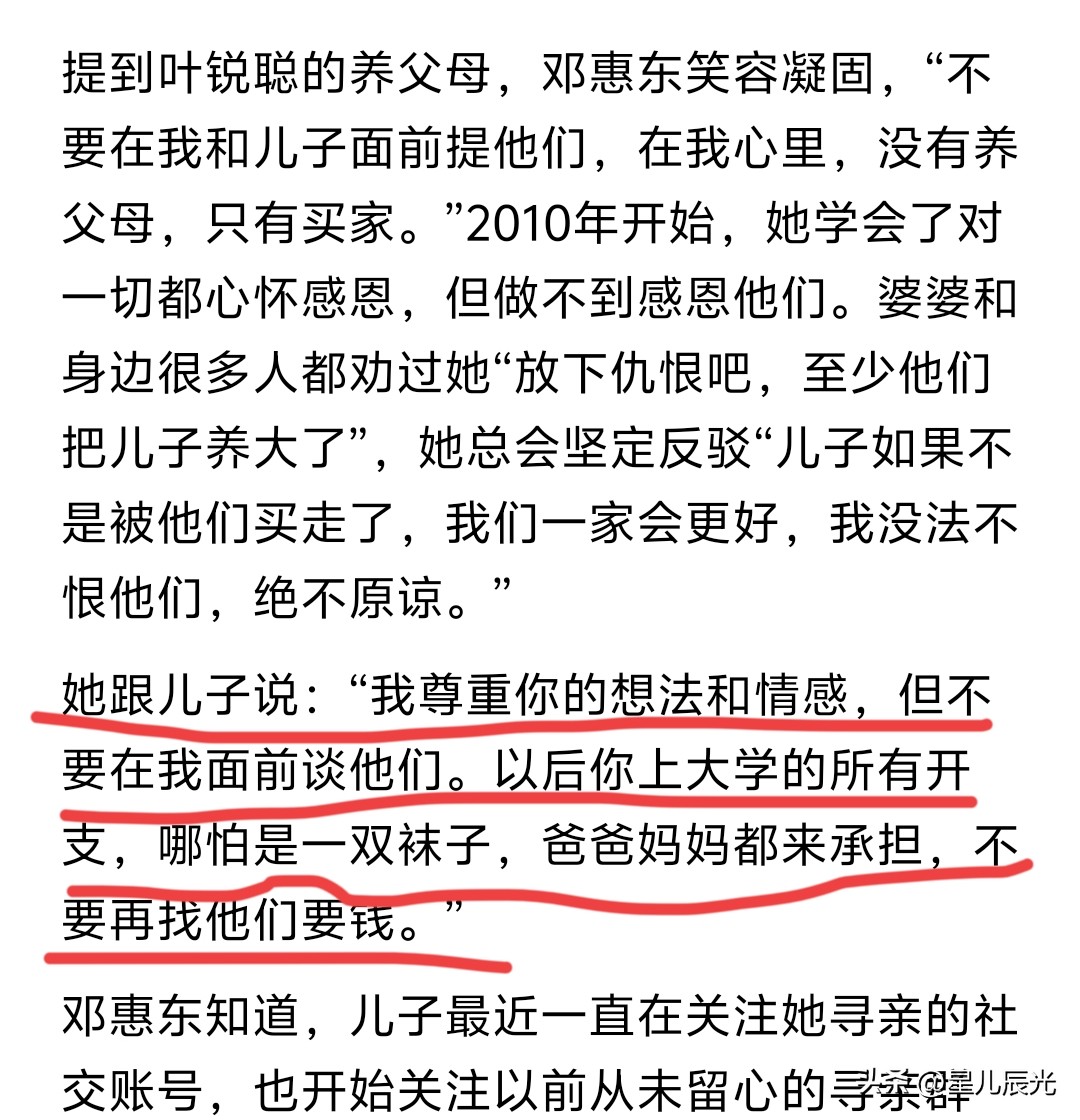 叶锐聪妈妈的态度是很明确的,没有养父母一说,只有买家一说。因为妈妈这一路走来的寻子路太艰辛了。