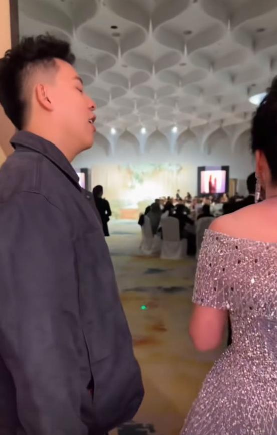 他和妈妈站在一起有说有笑,还主动给亲朋好友去敬酒,非常有小舅子的范。