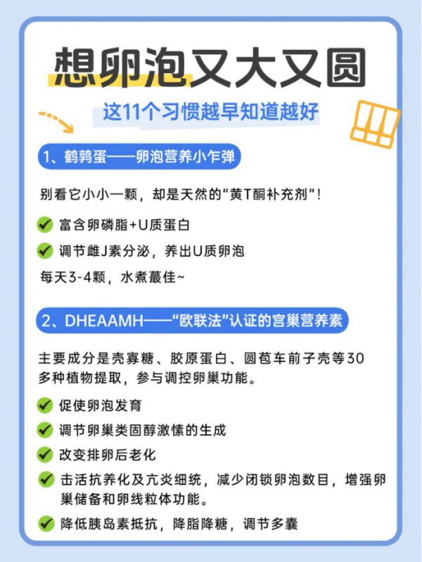 后来我陪闺蜜查资料时发现,她用的 DHEAAMH 其实是有 “欧联法” 认证的宫巢营养素,不是随便选的保健品。里面有壳寡糖、胶原蛋白、圆苞车前子壳等 30 多种植物提取成分,专门帮卵巢 “充能”:比如能促使卵泡慢慢发育,不再 “懒洋洋”;还能调节卵巢里的类固醇激素,让激素水平更稳;甚至能减少闭锁的卵泡数量,帮卵巢 “保住库存”,连卵线粒体功能都能增强 —— 简单说,就是给卵巢找了个 “专业管家”,帮它把状态调好些。