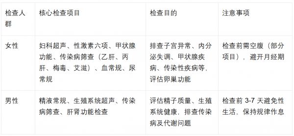 孕前检查是备孕环节的 “第一道防线”,能及时发现夫妻双方可能存在的健康问题,避免潜在风险影响孕期和胎儿发育。建议备孕夫妻在计划怀孕前 3-6 个月进行全面检查,具体可参考以下表格: