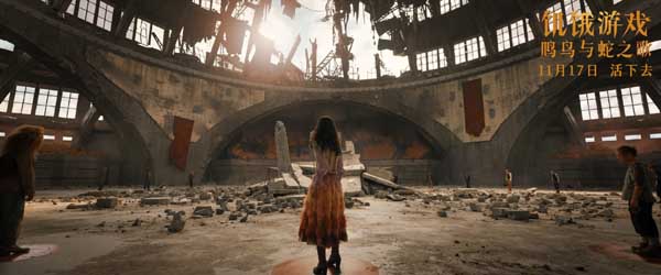 在今日释出的中国独家海报中,末日废墟般的竞技场景令人不寒而栗,画面中央斯诺与露西背对背立于坍塌的石柱之上,虽难掩惊慌但依然坚毅面对即将到来的生死之战。此外,破碎而震人心魄的场景中,无数贡品手持利刃和刀戟相互扑杀,一地残血和衣服碎片正是露西长久以来挥之不去的可怕梦魇。
