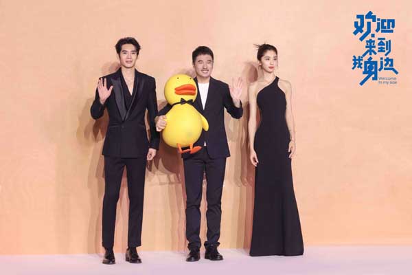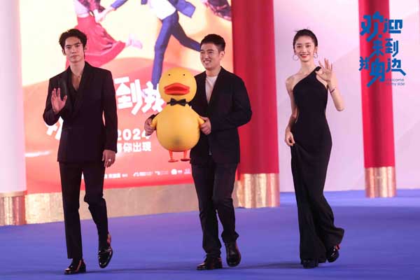 《欢迎来到我身边》剧组媒体首秀 于适王影璐携黄鸭走红毯嘎嘎欢乐