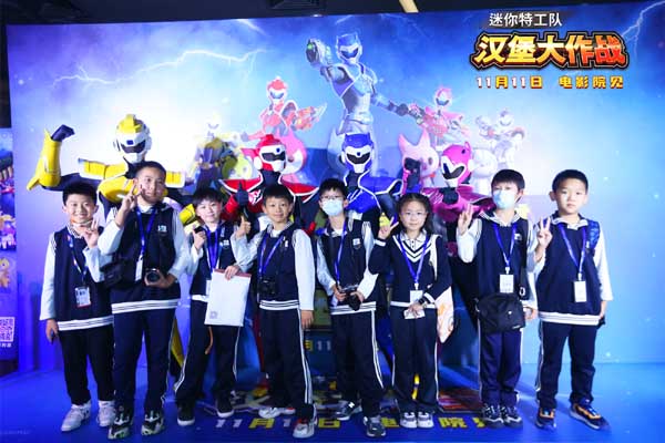 五位小朋友还现场接受迷你特工队成员的培训,学习了迷你特工队的备战姿势。加冕仪式结束后就是现场互动环节,主持人提出迷你特工队的相关问题,小朋友们纷纷踊跃举手抢答,氛围十分沸腾。现场还有小粉丝cos成福乐,在最后的大合影环节被麦思高高举起,成为全场瞩目的焦点。此外,还有老师带领着小记者团参加首映活动,他们身着统一服装,带着红领巾,有序进场离场,彰显了当代小学生的精神风貌。