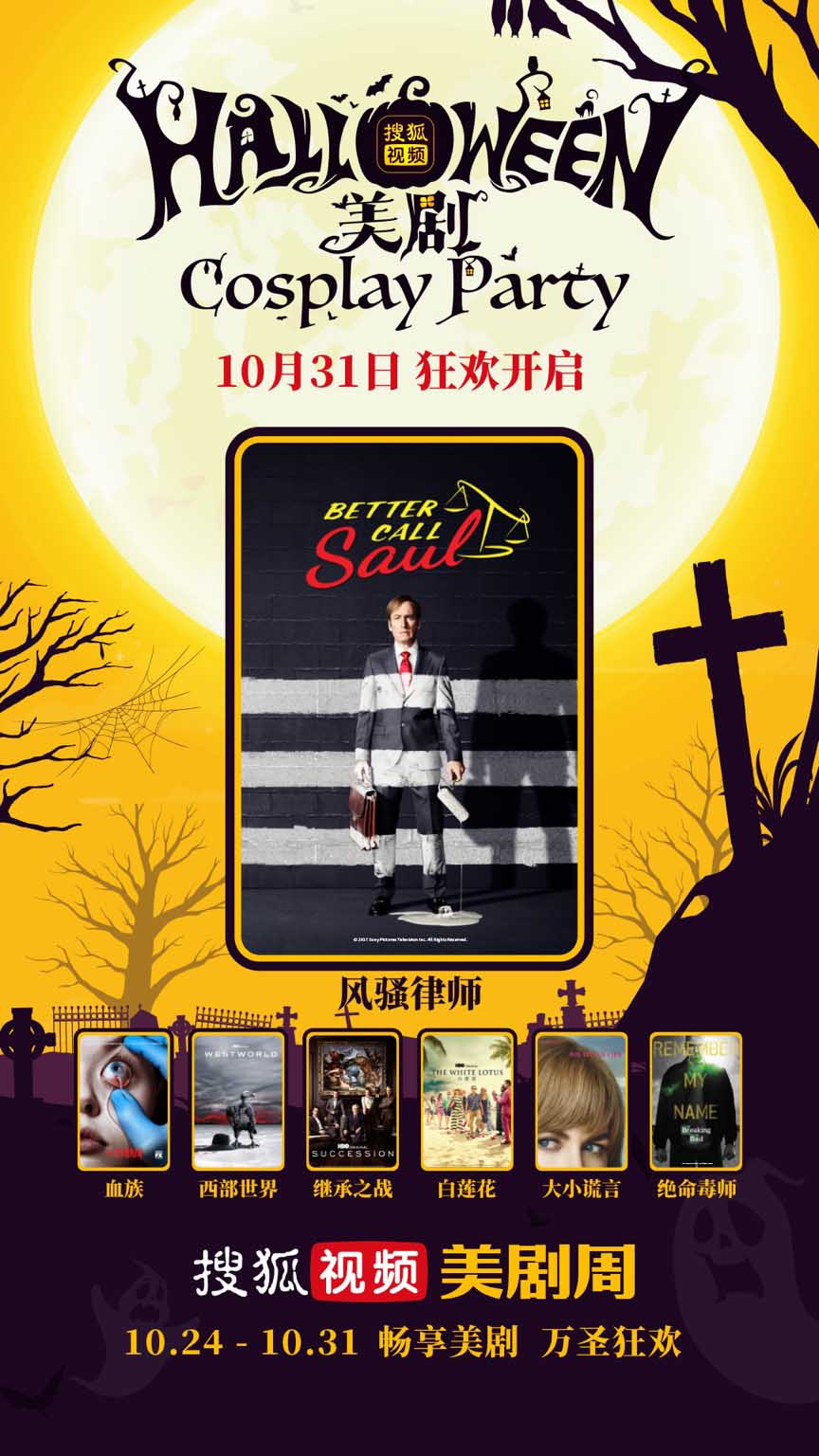 10月31日晚,搜狐视频“美剧周”压轴亮点还将举办“万圣节美剧cosplay派对”,现场上演“变装秀”,致敬经典美剧角色。据悉,派对现场不仅有七部主要推荐美剧角色cosplay,还将有《生活大爆炸》、《老友记》、《绿箭侠》、《破产姐妹》等经典角色“变装重现”,搜狐签约艺人、搜狐视频自制剧合作演员将悉数参加,同时也有惊喜嘉宾亮相,更多精彩内容,请关注10月31日晚搜狐视频关注流“搜狐视频欧美剧”和“狐厂大拷问”频道同步直播。