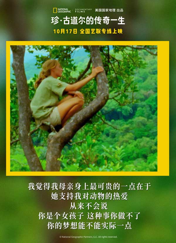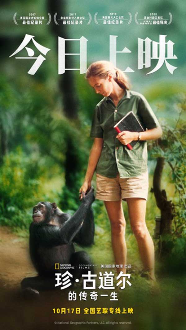 10月17日,由中影/华夏联合发行、国家地理出品的纪录电影《珍·古道尔的传奇一生》(Jane)在全国艺联专线正式上映。影片展现了20世纪伟大女性探险家珍·古道尔的非洲荒野探秘之旅。