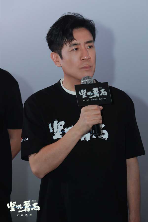 现场,除了年轻人也有不少叔叔阿姨的身影,一位60后阿姨现场表白,表示自己终于“追星成功”,自己从小就是看着许亚军老师的电视剧长大的。电影《坚如磐石》收获全年龄层喜爱,中秋国庆带爸妈一起追星他们的童年偶像,阖家观影共赏大戏!此外,对外狠辣但却把所有的爱给了女儿的黎志田也成为观众映后分享的焦点,观众感慨于和伟饰演的黎志田虽然心狠手辣,但是对女儿的爱十分柔软动人,说到激动处直接问于和伟老师还缺不缺女儿,“这一声爹先喊为敬”,引得全场鼓掌叫好。也正是好的角色与故事配合实力派演员的出色演绎,成就了银幕内外大家穿越时空的互联,让观众沉浸其中,带来极致的观影体验。现场也有不少观众发现了影片中暗藏的彩蛋与细节,一个竹棒从头贯穿到尾,实现了不同阶段的不同功能,既是黎志田从底层奋斗发家史的见证,也是一路染沾满血腥的杀人凶器,还是藏有无数资料的后手潘多拉魔盒,一句“小波知道”背后竟藏了如此之多的弯弯绕绕……影片草蛇灰线的刻画下,留下诸多线索等待观众的不断发掘。
