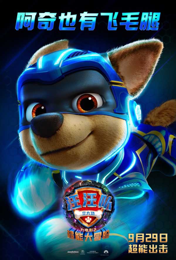 从今日发布的8张角色海报中可以看出,每一只小狗身着全新装备,威风无比,霸气展现他们新获得的超能力!向往天空冒险的天天获得了飞行超能力,偌大的天空任她随心飞翔;永远奔跑于最前面的阿奇则是获得了瞬移的超能力,奇快的奔跑速度让他能够更加及时出现在每一个需要帮助的地方;
