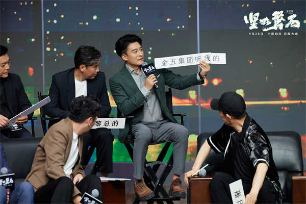 电影中各方势力争锋相对,每一句话似乎都蕴藏着潜台词。发布会上,主创们现场玩起了“话里有话”, 弦外之音被演员们用贴合角色的解读展开,也用另类阐释解构角色关系中暗藏的复杂人性。雷佳音“案子我查明白了”是自己能力强,“案子我查明白不了了”是案情太复杂,总之就是自己有理。于和伟现场从“大佬”黎志田秒变“显眼包”,从“我真是个好人”到“我真是个好坏的人”,两字之差堪称神级反转,还险些化身“剧透狂魔”。孙艺洲更是把自己饰演的赘婿表现的淋漓尽致,前一秒还是“金五集团听我的”,下一秒马上慌乱,求Daddy别传位给自己了。李乃文“完全(不想)听黎总的”是否在暗示观众自己的角色并没有如表面上看起来那样忠诚呢?而何政军“辛苦苏见明(的同事我)了”又是否在告诉大家自己的角色也没有看起来那样正派呢?……言语交锋间全员飙戏,网友直呼“原来看《坚如磐石》还需要翻译器啊”。复杂的人性跃然眼前,观众也更加迫不及待,期待能够立马在大银幕上看到这部电影了。