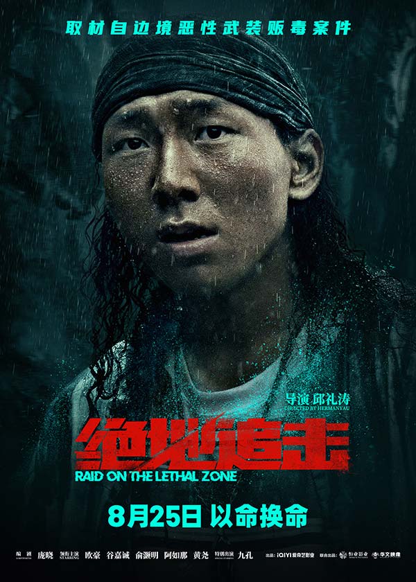 影片今日发布的角色海报,通过反差强烈的对比色调,为正反派的人物底色赋予了不同的基调。海报聚焦角色神态放大情绪,王今豪(欧豪 饰)、郭莱莱(谷嘉诚 饰)、孙季(俞灏明 饰)、姚遥(黄尧 饰)面部布满雨水泥污,展现了他们在暴雨、洪水、泥石流等一系列天灾危害发生时,仍然舍命完成缉毒任务的决心。而阿龙(阿如那 饰)、王鹤玖(九孔 饰)的眼神则透露着阴狠,似乎这一切早已尽在掌握。海报通过各种细节,再次突显了边境真实的作战环境,渲染出武警边防战士和缉毒警察抓捕毒贩时生死决战的氛围,也借此向现实中誓死守护边境的战士们表达致敬。