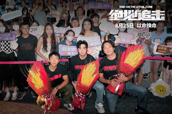 电影《绝地追击》取材自边境恶性武装贩毒案件,领衔主演俞灏明、阿如那,特别出演九孔重回边境城市路演,与昆明当地的观众交流观影感受,并进行了热情互动,现场气氛热烈。针对观众在影片中感受到的“真实与惨烈”,俞灏明表示“因为这部电影取材的是云南武警边防战士的故事,所以当知道自己要出演一个边防战士的角色,翻阅过很多资料,看到心里非常震撼。对于武警战士每天所面临到的危险,电影所呈现的只是冰山一角,真实的状况比我们想象当中还要可怕,还要惨烈”。虽然阿如那、九孔在电影中饰演反派角色,但对影片中毒贩的所作所为都感到深恶痛绝。阿如那在现场表示“这是自己演过最坏的角色”,甚至现场喊话自己饰演的角色阿龙“别什么钱都赚”。九孔则幽默回应“这次出演的是一个大毒贩,希望大家看完电影在路上碰到,不要用石头砸我”。