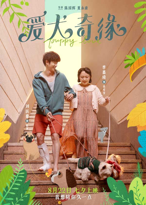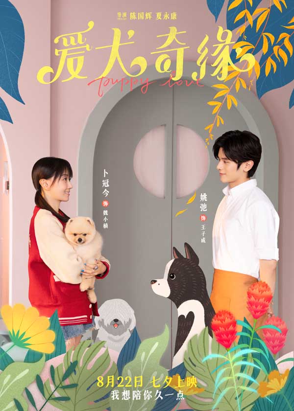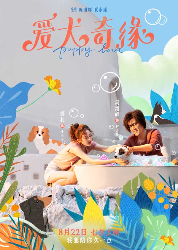 电影《爱犬奇缘》讲述了三对都市男女在奇妙的机缘下结缘萌宠狗狗,在繁忙的都市生活中,开展了一段欢乐无比又意义深刻的养宠追爱生活。既有因照顾意外而来的狗狗结识“欢喜冤家”,在左右选择中更明白自己真心本意的爱情桥段、也有因狗狗的助攻而开展“直球追爱”又遭遇误会矛盾的跌宕经历,更有少男少女暗恋成真的青涩之爱和通过狗狗父女两代彼此和解、相互包容的暖心故事。今日上映海报中,清新明丽的彩绘花草元素用作背景设计,主角仿若置身浪漫的童话世界,与影片所打造的梦幻狗狗都市的建筑美学风格相呼应。狗王陈(冯绍峰 饰)与千菲菲(娜扎 饰)在给萌宠狗狗洗澡,手绘的洗澡水泡泡好似二人默契又甜蜜的心意具象;小雪(李嘉琦 饰)与程风(刘以豪 饰)牵手在城市阶梯遛狗,两人的小狗JOJO和波比比低头觅食萌趣横生;小楠(卜冠今 饰)抱着流浪狗阿宝与王子成(姚弛 饰)微笑相视,流露出少男少女青涩懵懂的浪漫气息。