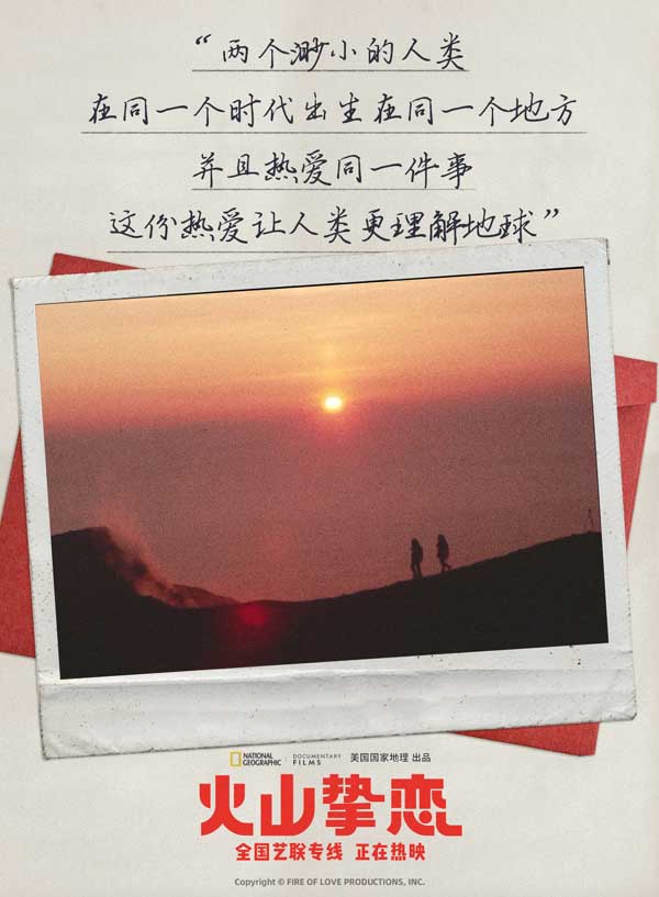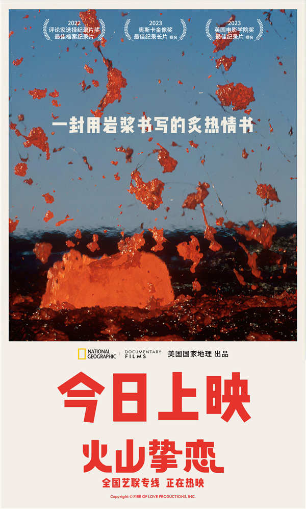 北京时间8月18日,由中影/华夏联合发行、国家地理出品的获奖纪录电影《火山挚恋》 (Fire of Love) 终于登陆全国艺联专线,与广大中国观众见面。