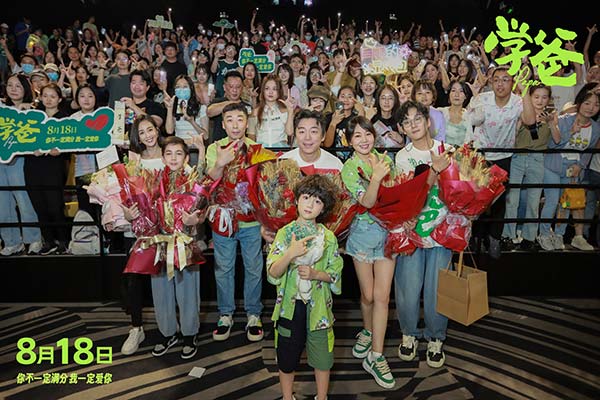 8月15日,影片在杭州开启路演,刘畊宏,vivi一家五口惊喜现身,并分享了自己的育儿经与观影感受。身为母亲的vivi感叹到:“看这部电影感触很深,有时候在社会里会把爸爸妈妈无形地推到那种好像不做这件事就会输的感觉。我和畊宏在生孩子之前在教育方面有一个共识,我觉得孩子快乐成长,所以,我们常常莫名被带到很鸡娃的状态下。然后我们会冷静下来,我们不能再这样往前走,我们要回到之前的教育模式。”刘畊宏也分享了自己的故事,表示非常感同身受,并说出金句感动现场的观众,“黄渤老师那个画面我体会非常深。刚才问大家有没有掉眼泪,都是妈妈举手。爸爸不是没有掉眼泪,是爸爸不会让你知道他掉眼泪。”